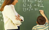Irakasleak ikasleei irakurtzen eta batuketak egiten irakasten die.