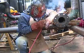 Soldatzaileak zuk erabiltzen duzun bizikletaren burdinazko hodiak lotzen ditu bizikletaren koadroa osatzeko.